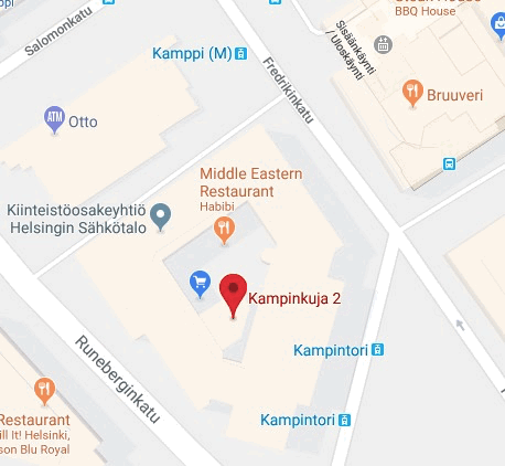 Sisäänkäynti sijaitsee Sähkötalon 1. kerroksessa, Robert’s Coffeen vieressä.